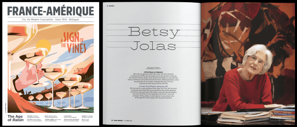 Elle a fait ses gammes entre Paris, New York et le Vermont, composé plus de 250 œuvres jouées par les plus grands orchestres du monde et côtoyé James Joyce, Ernest Hemingway et Joan Mitchell. France-Amérique a rencontré chez elle la Franco-Américaine Betsy Jolas : une pionnière de la musique contemporaine qui, à 97 ans, continue de créer avec la même ferveur. Lire
