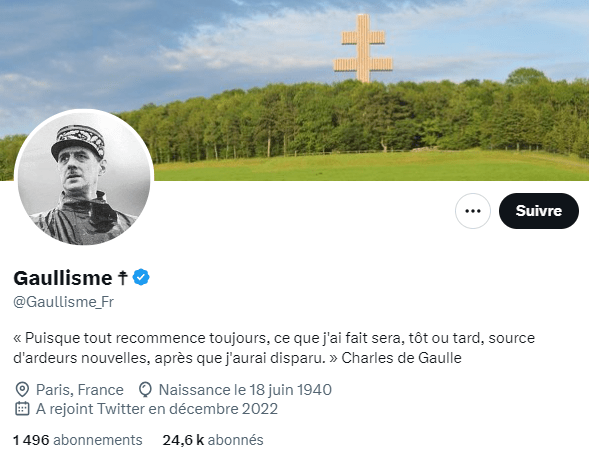 Suivi par près de 25 000 personnes sur X, le compte mêle promotion du Général et prises de position politiques parfois discutées. Il est tenu par Rémy Berthonneau, assistant parlementaire du député RN Alexandre Loubet. Lire